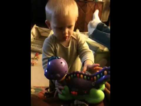 august got this lettersaurus from his godparents, and loves the music setting. he pushes the buttons til he finds the song he wants. sometimes he just walks around hugging it and swaying.